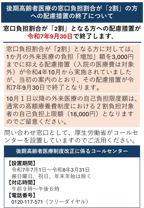 後期高齢者医療制度の窓口負担割合の見直しに伴う配慮措置の終了について